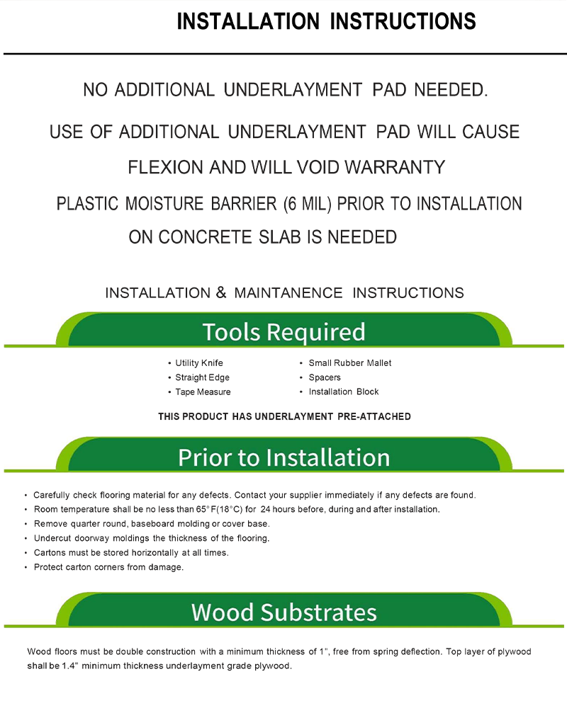 Construction | Engineered Multi-ply | Thickness | 3/8″ or 1/2″ |